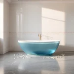 Parmi les matériaux salle de bain privilégiés par Azuria, on trouve des revêtements résistants à l’humidité, comme le carrelage grand format et les panneaux décoratifs en matériaux composites, qui assurent facilité d’entretien et élégance. Les sanitaires en céramique haut de gamme et les meubles fonctionnels aux lignes épurées illustrent l’attention portée à la fois au design et à la robustesse.